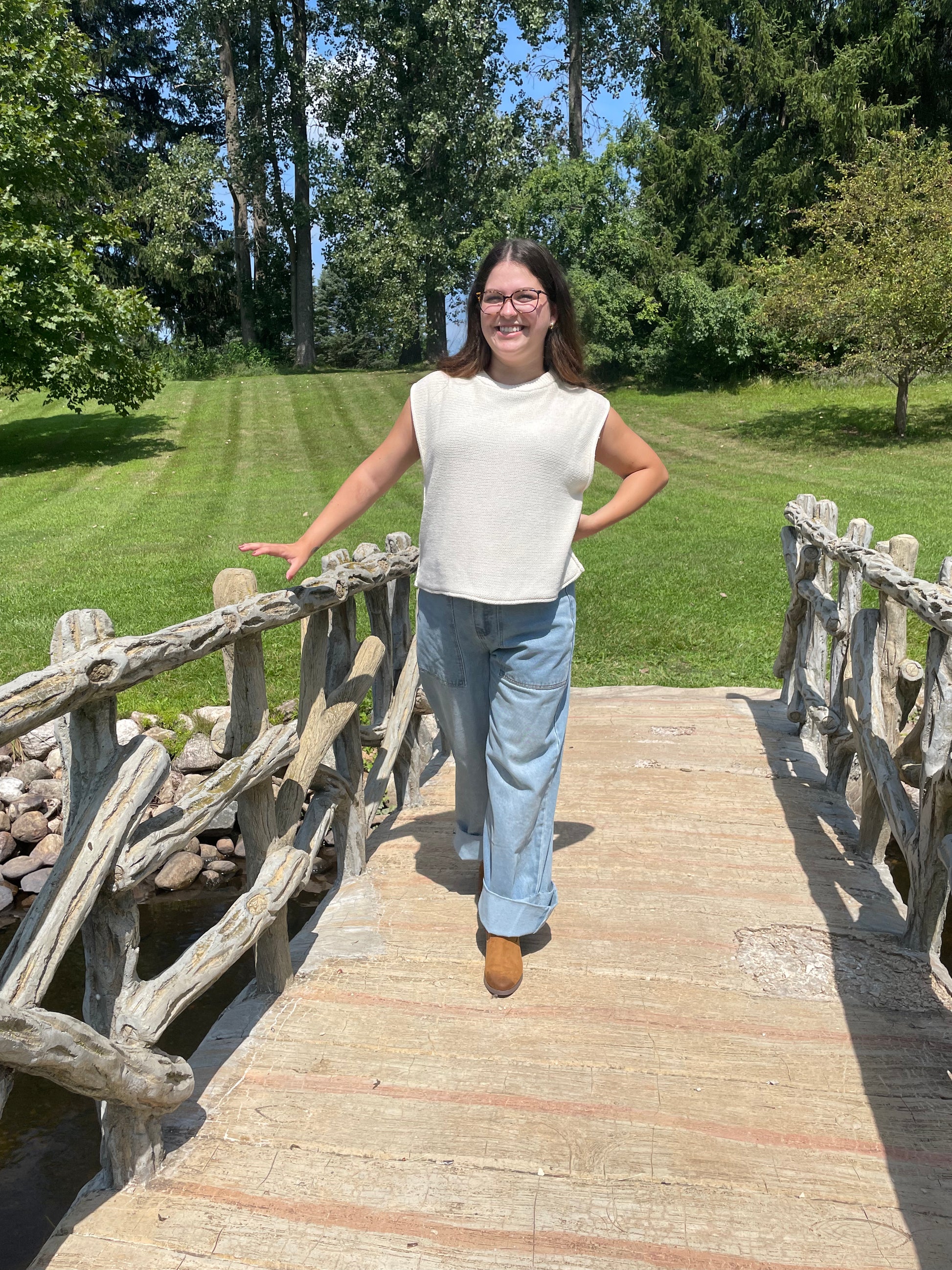 Model is 5'1 and a size 10. Wearing a size large. Unfortunately these jeans are too long for model.