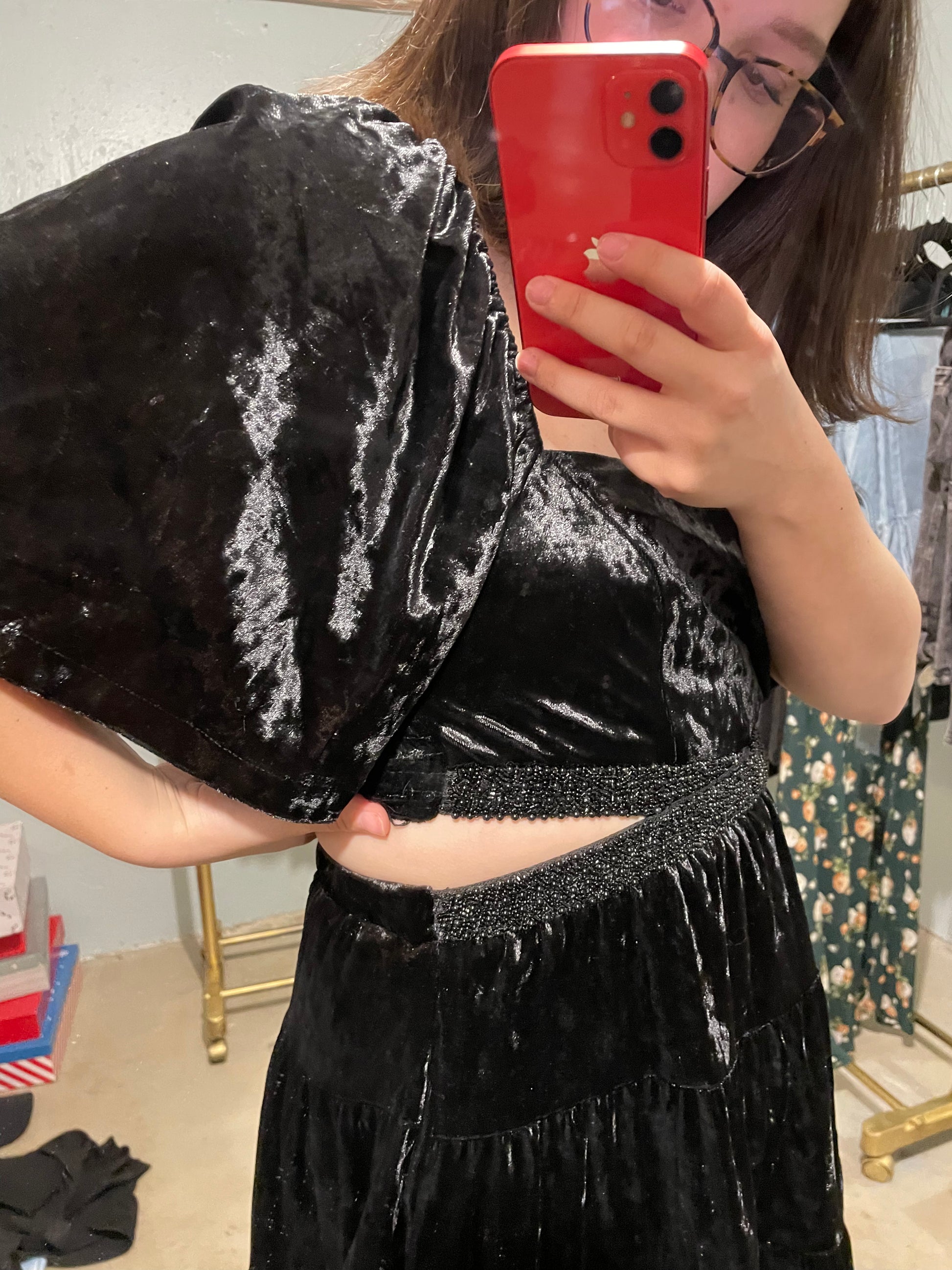 Get ready to turn heads in this Vedette Black Velvet Beaded Waist Cutout Mini Dress. Made from luxurious velvet, this dress features a flirty cutout waist and sparkling beaded details. Perfect for a night out, this dress will make you feel confident, stylish, and ready to party!